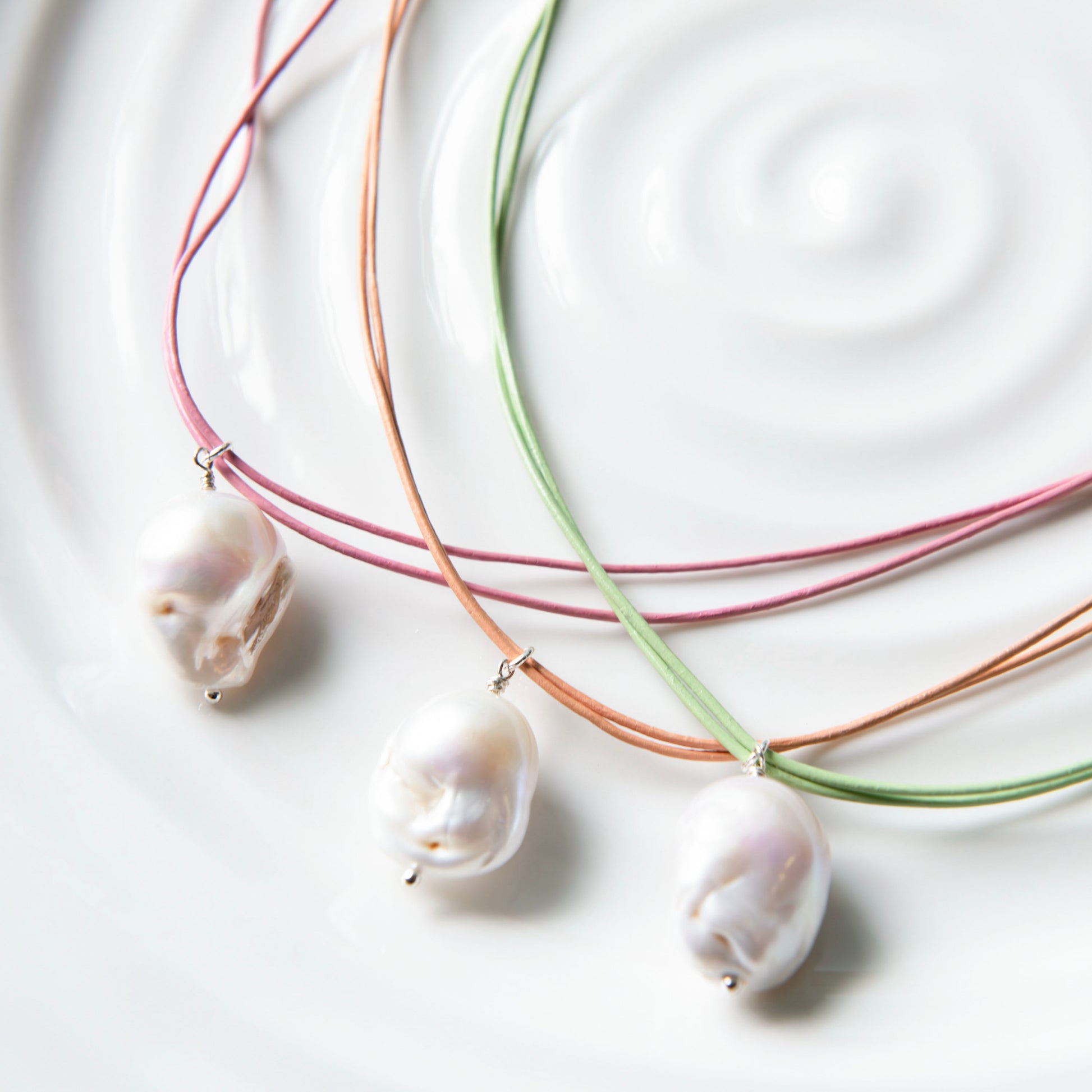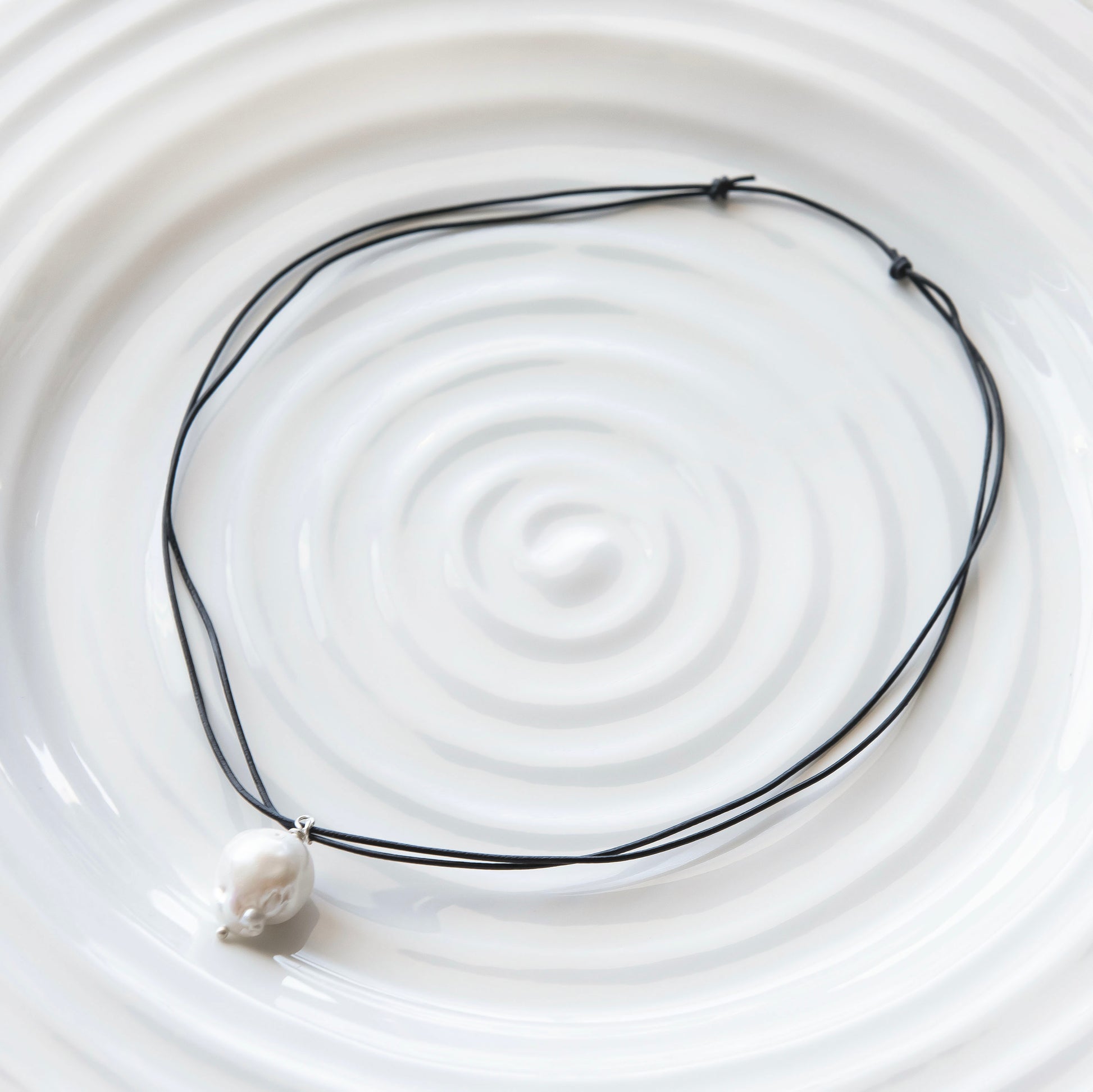 Made with baroque pearl and leather cord.