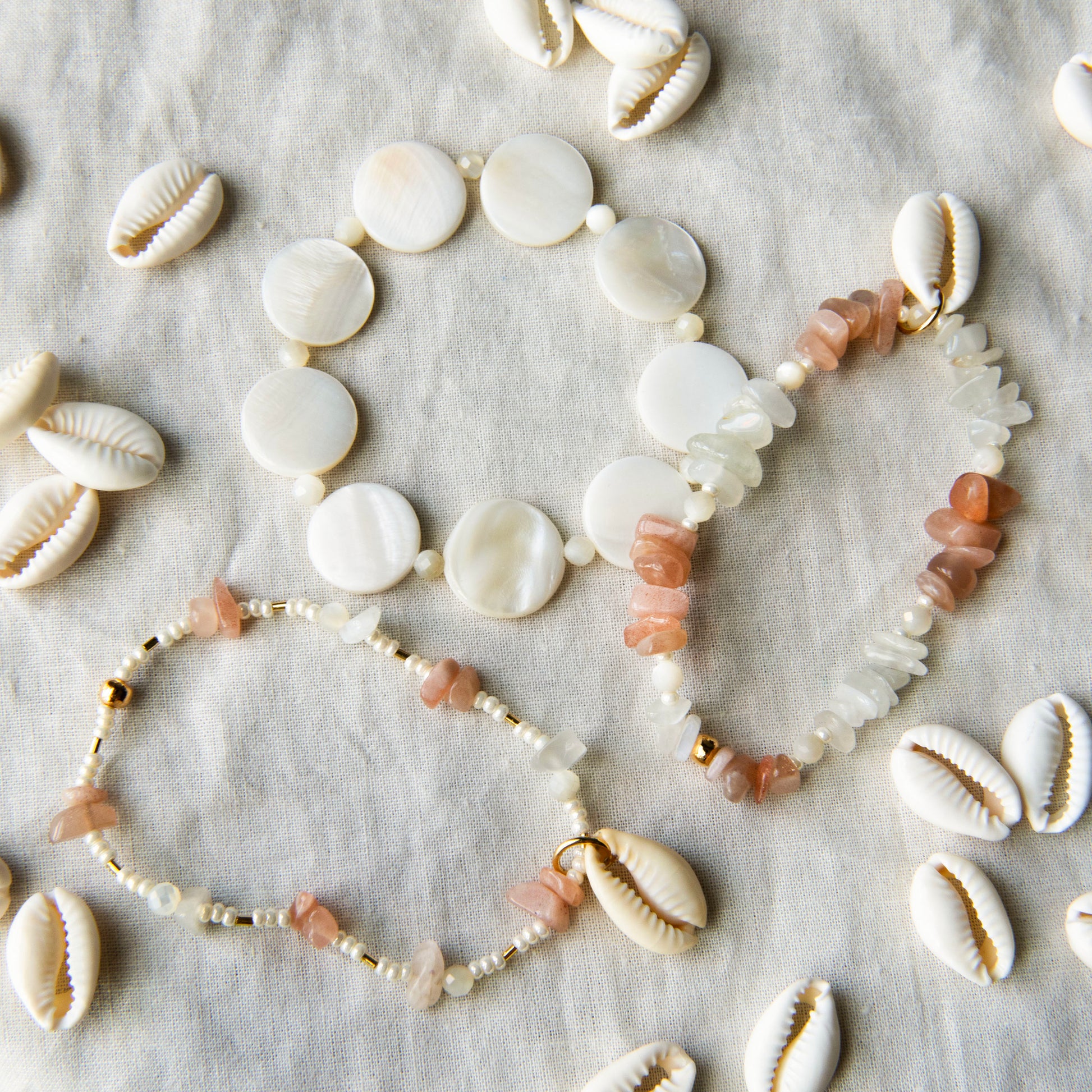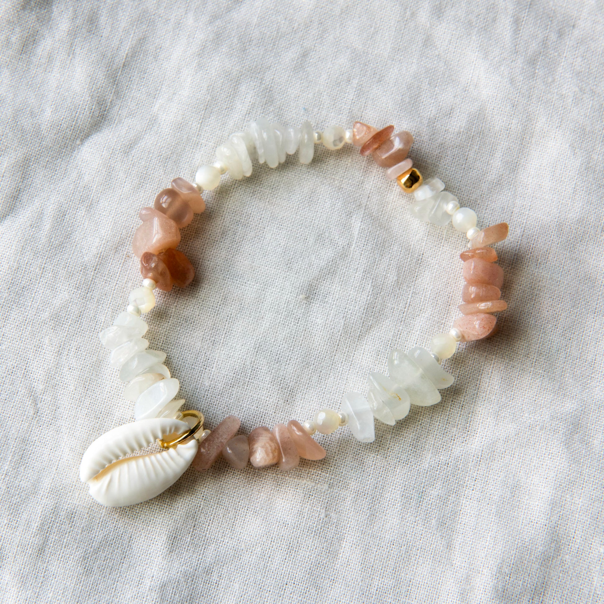 Shell, moonstone, and sunstone dreams. ✨ Our new bracelet is a blend of coastal vibes and celestial magic.