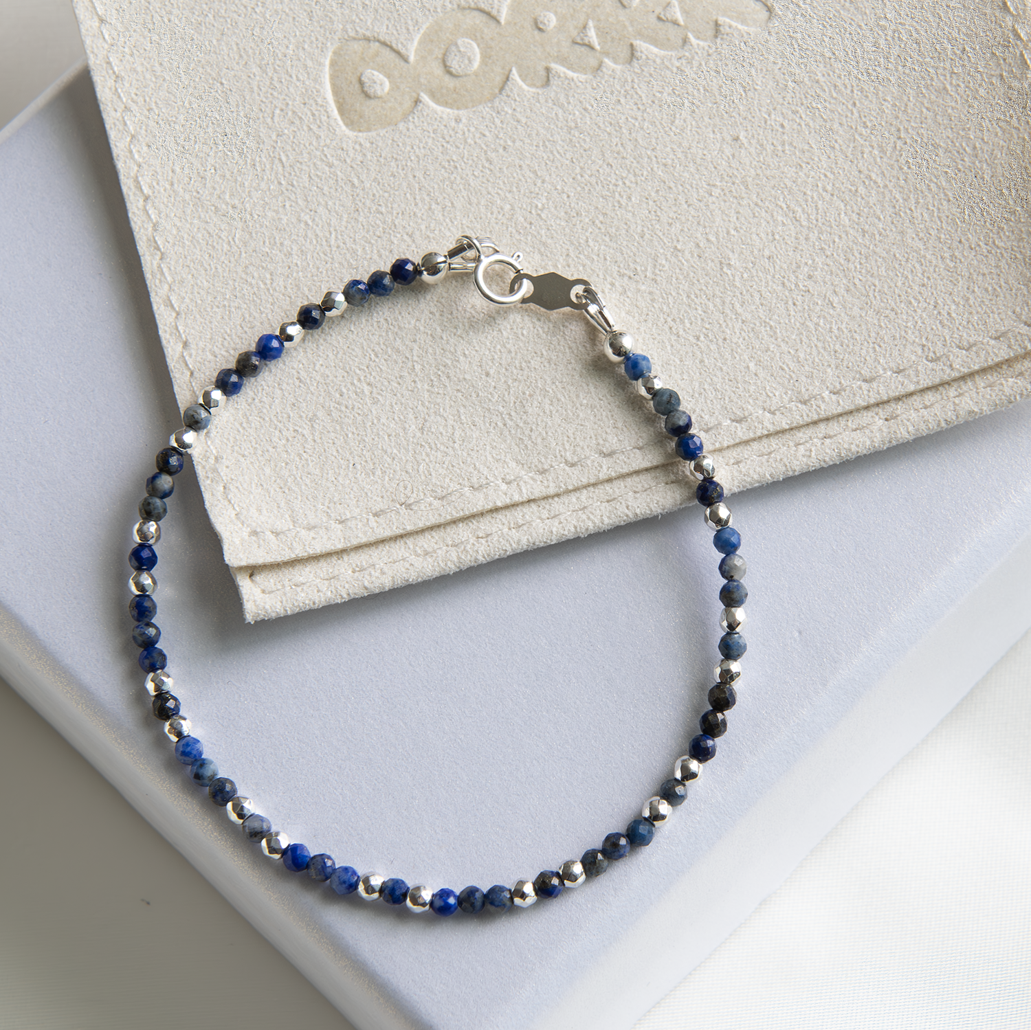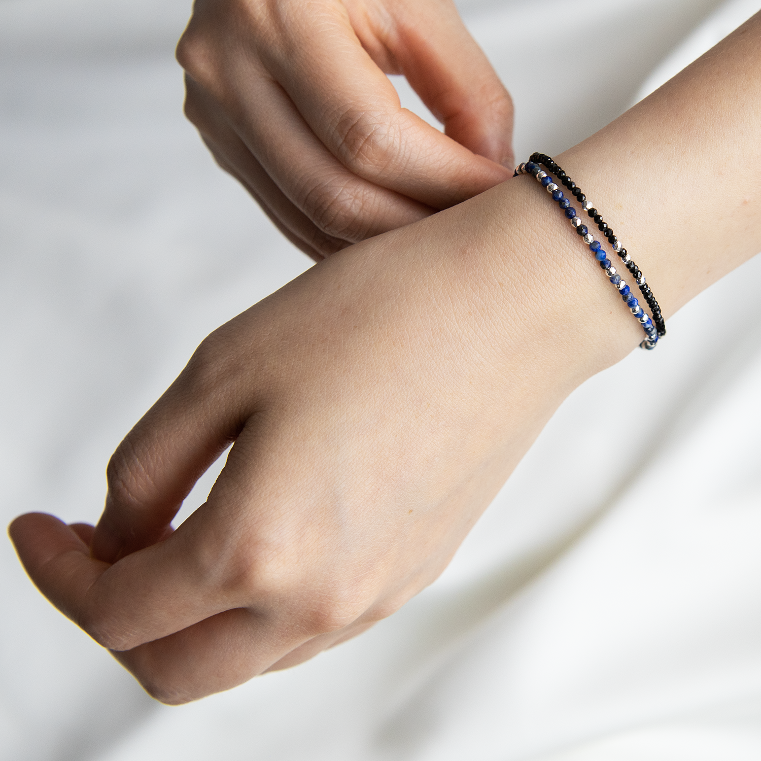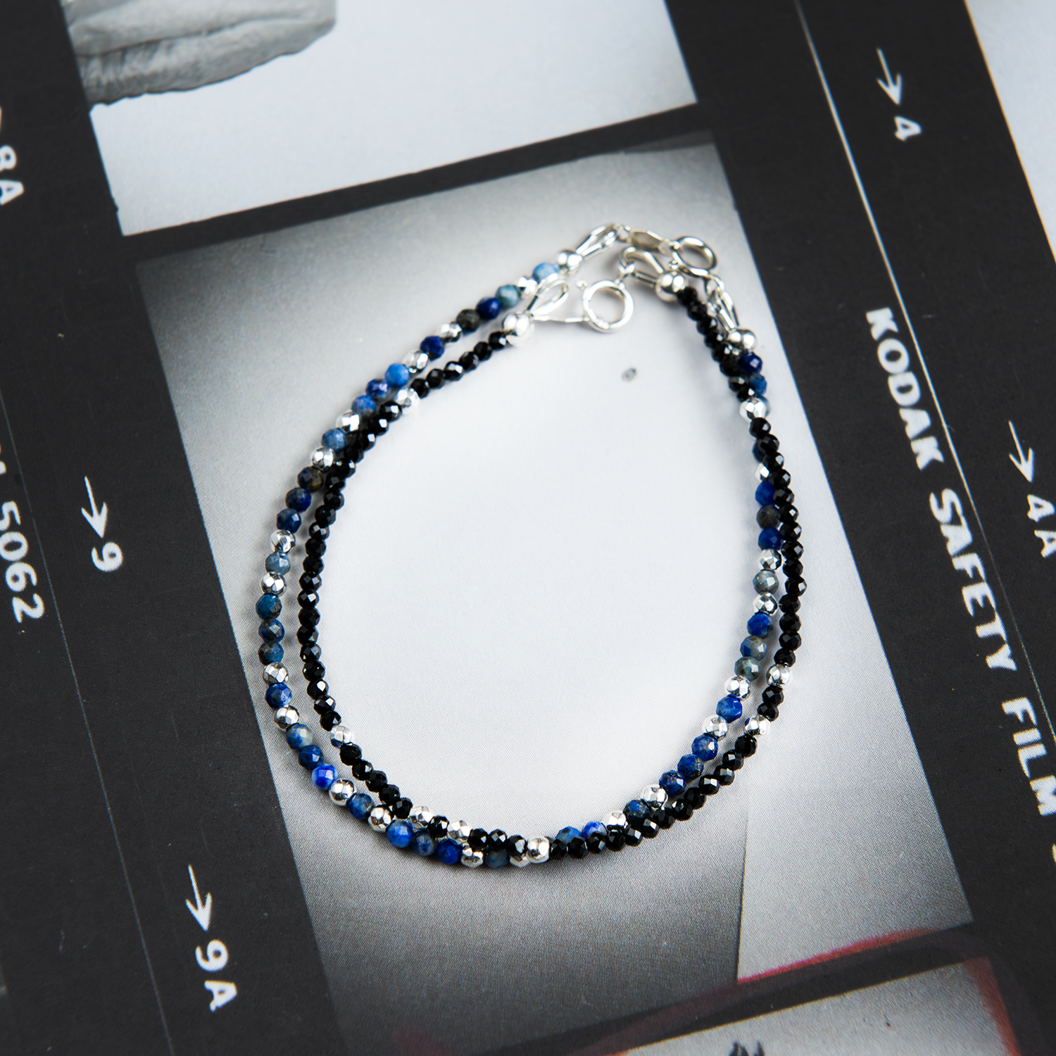Made with lapis lazuli, hematite, and sterling silver hardware.