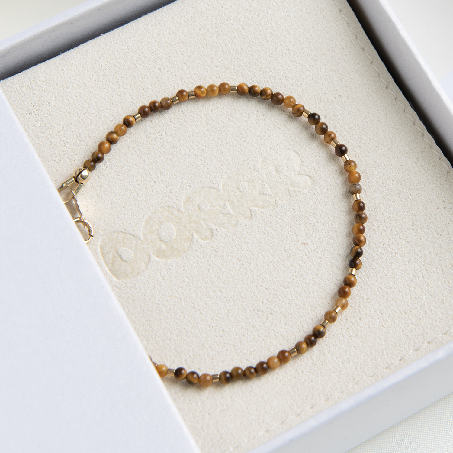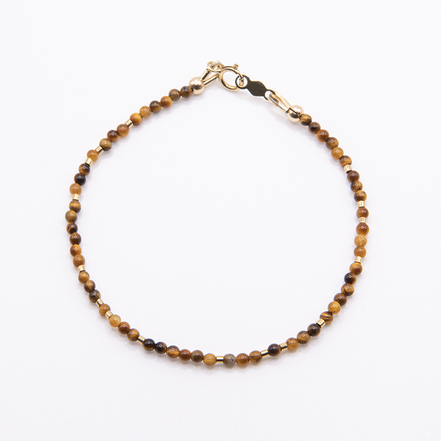 Made with tiger's eye, gold miyuki beads, and gold filled hardware.