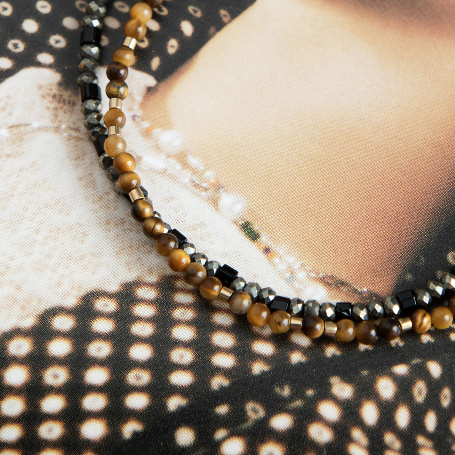 Each piece is unique and handmade, with variations in the placement of the beads.