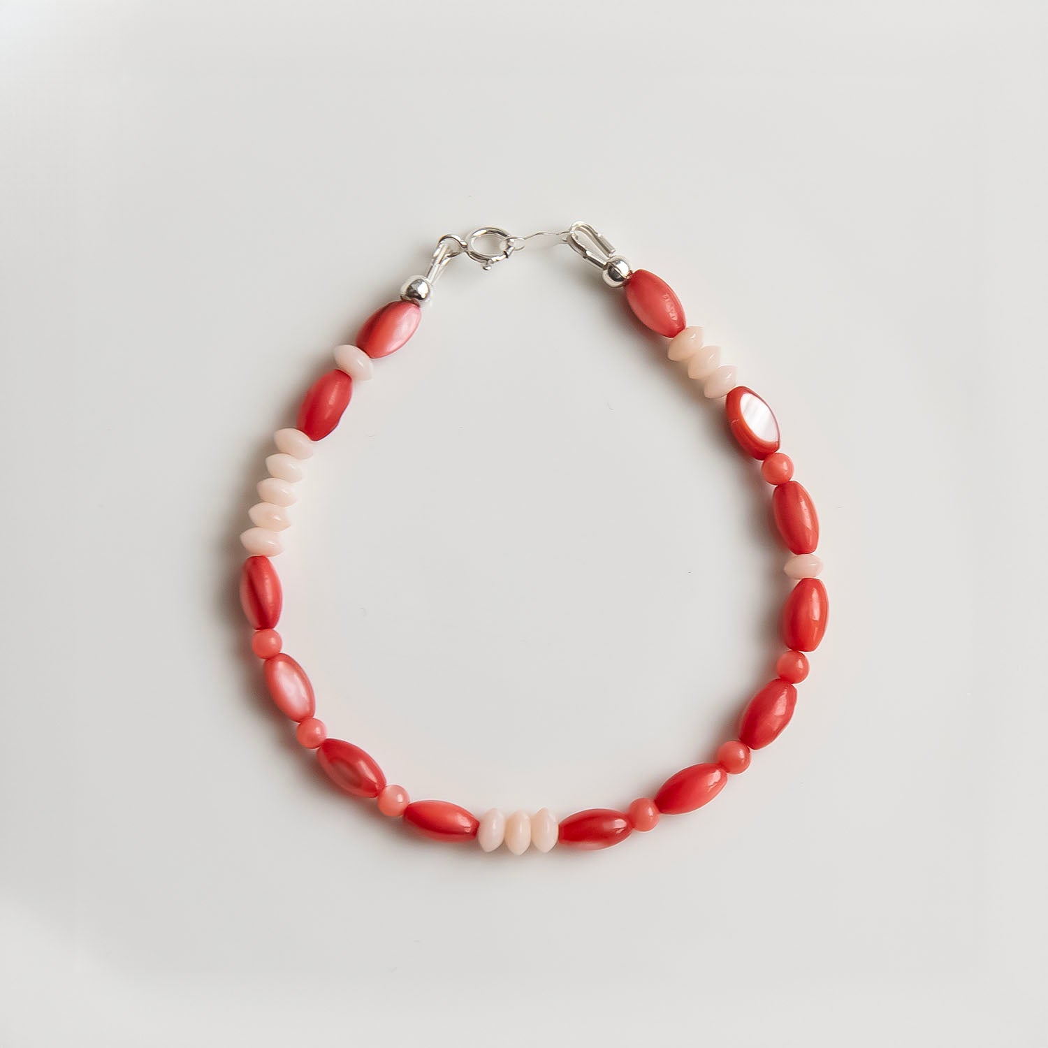 Dahong Bracelets are crafted with exquisite mother of pearls and corals in elegant oval and dish shapes. The name 'Dahong' translates to 'vermillion' or 'light red' in Korean, perfectly capturing the essence of the vibrant hues showcased in this stunning bracelet.