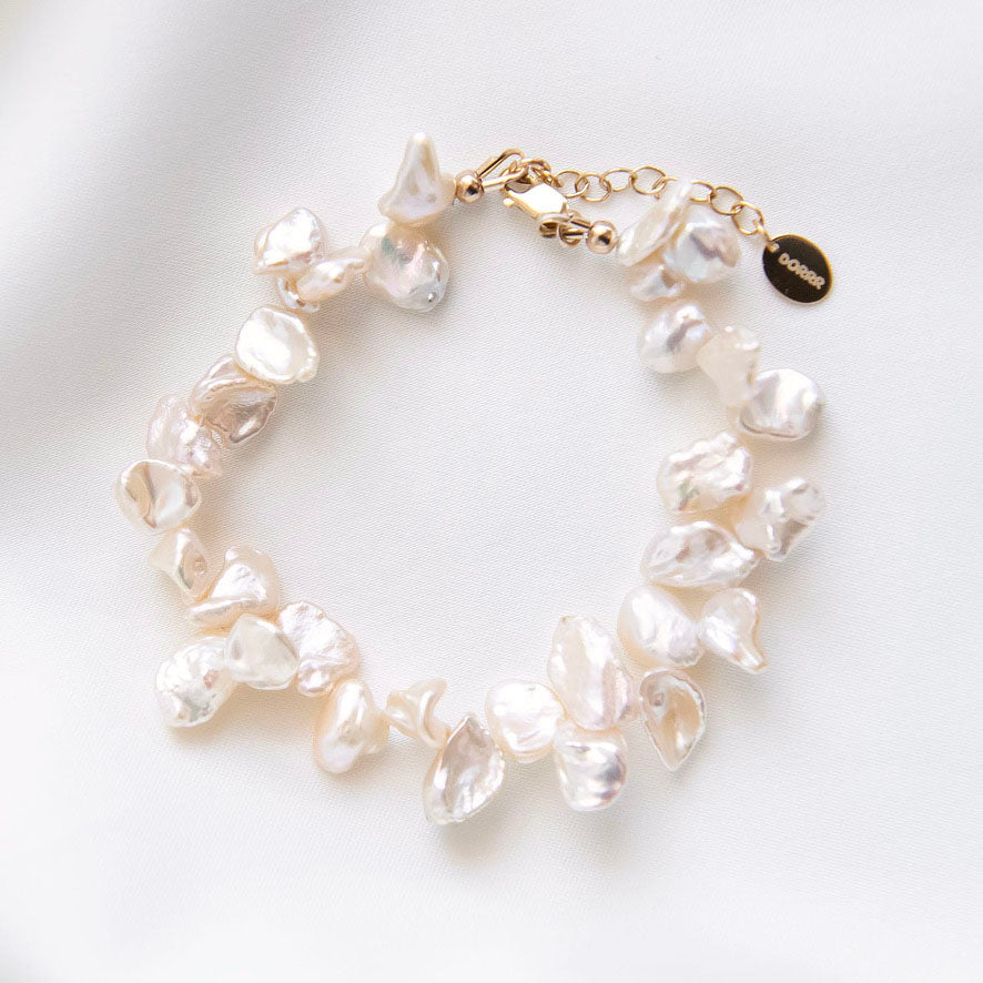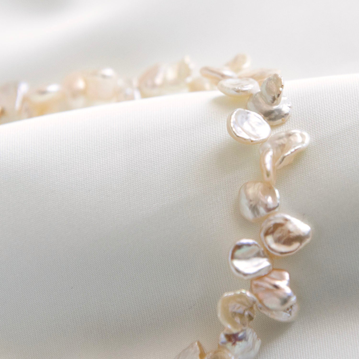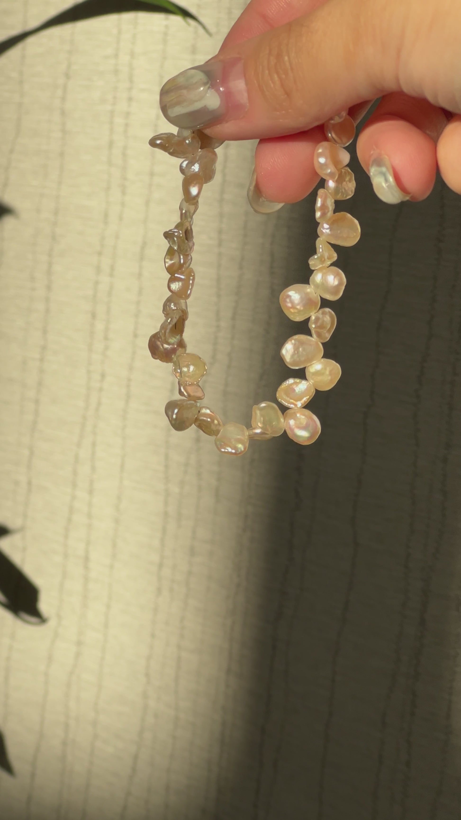 Each piece is unique and handmade, with variations in the placement of the beads.