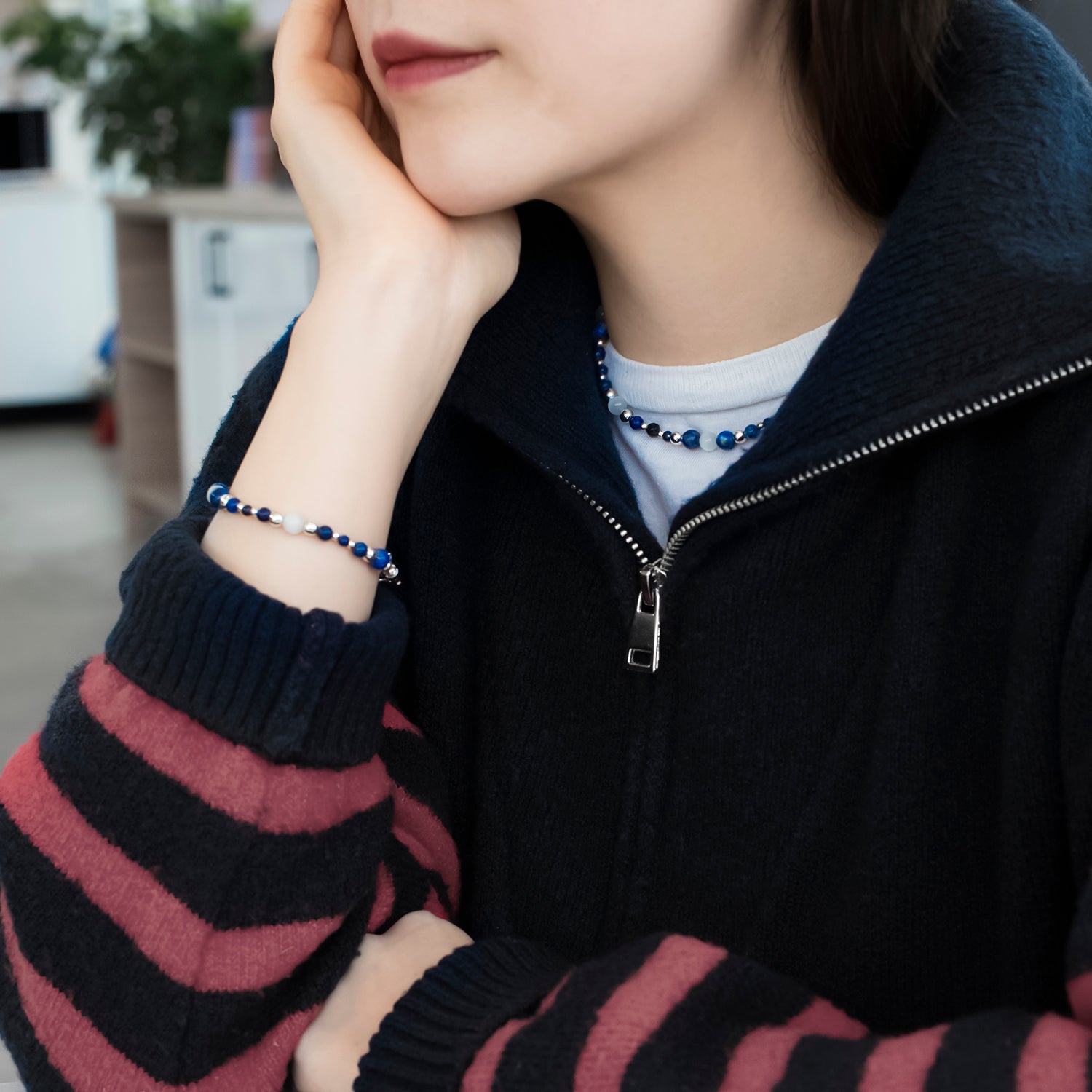 Each piece is unique and handmade, with variations in the placement of the beads.