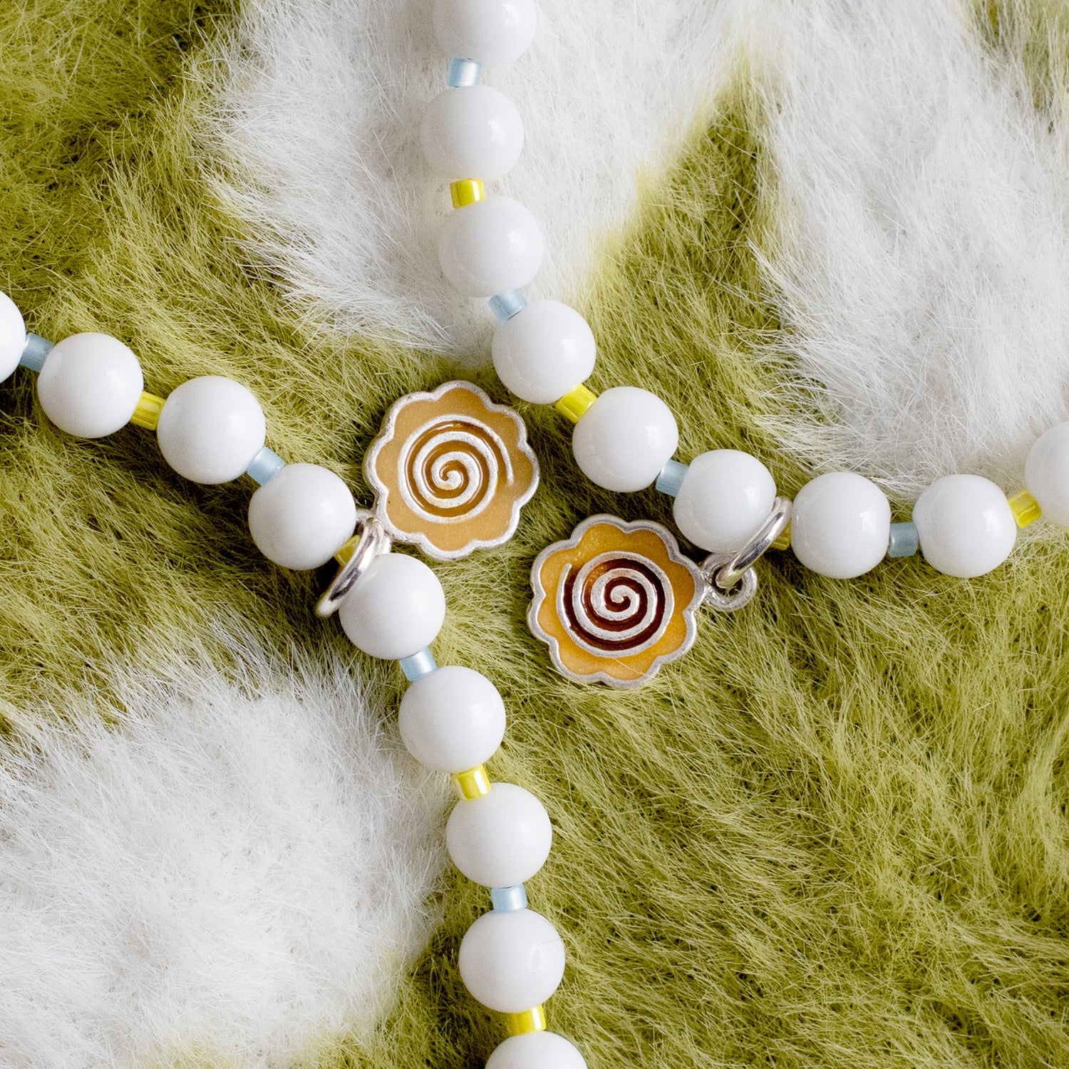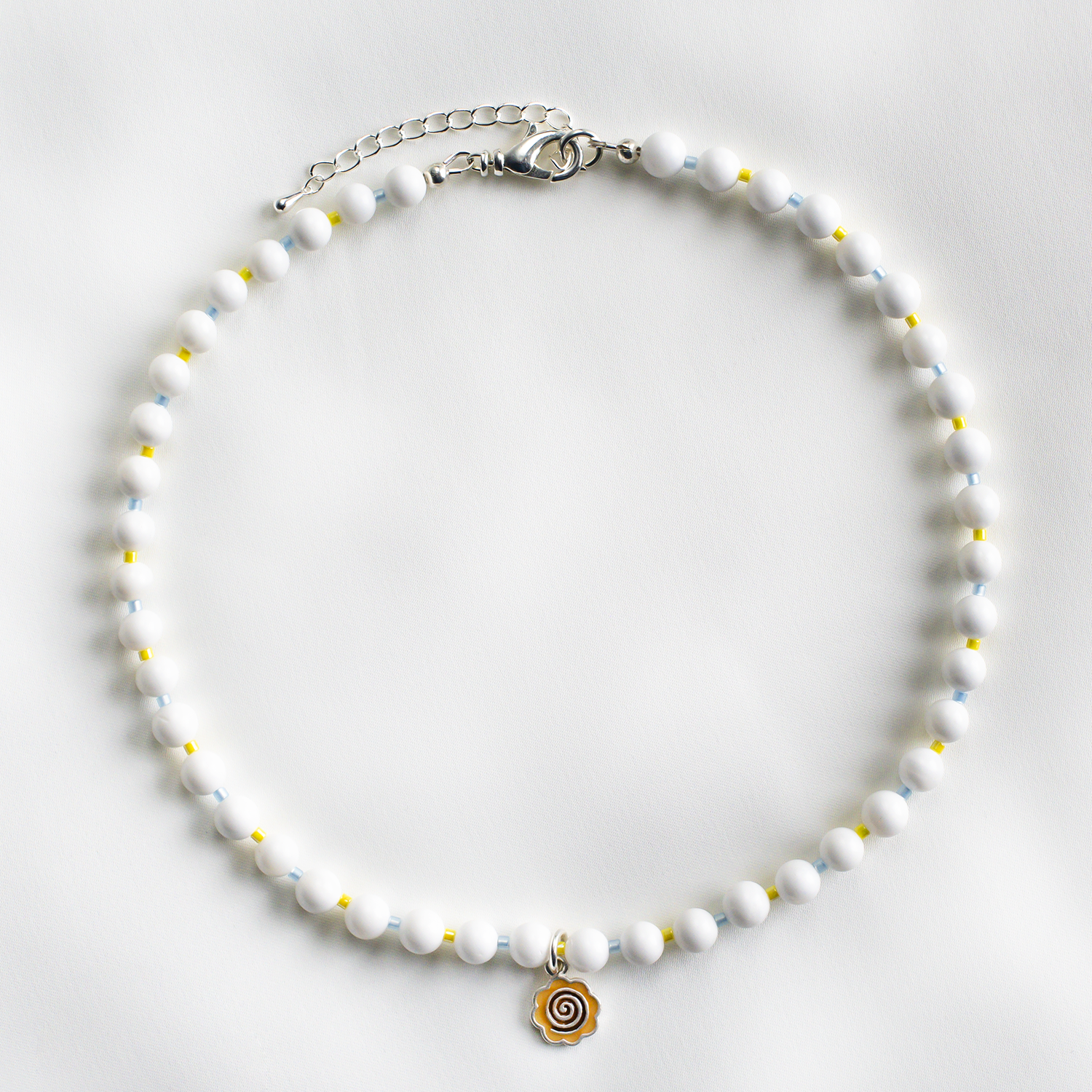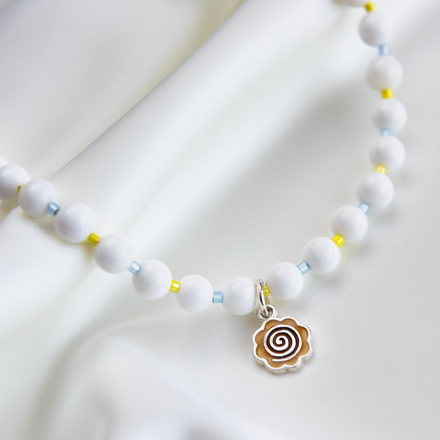 Each piece is unique and handmade, with variations in the placement of the beads.